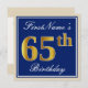 Elegant, Blue, Faux Gold 65th Birthday + Name Invitation