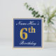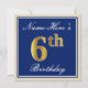 Elegant, Blue, Faux Gold 6th Birthday; Custom Name Invitation