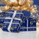 Elegant, Blue, Faux Gold 6th Birthday; Custom Name Wrapping Paper
