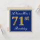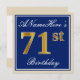 Elegant, Blue, Faux Gold 71st Birthday + Name Invitation