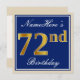 Elegant, Blue, Faux Gold 72nd Birthday + Name Invitation