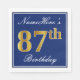 Elegant Blue, Faux Gold 87th Birthday; Custom Name Paper Napkins