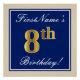 Elegant, Blue, Faux Gold 8th Birthday; Custom Name Poster