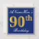 Elegant, Blue, Faux Gold 90th Birthday + Name Invitation