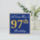 Elegant, Blue, Faux Gold 97th Birthday + Name Invitation