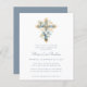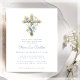 Celebrate this special occasion with our elegant and ornate Blue and Gold Cross First Holy Communion paper Invitations! Featuring a stunning blue and gold cross design with delicate flowers on a crisp white background, these affordable paper invitations are the perfect way to invite your loved ones to this significant event. With elegant dusty blue lettering, this invitation is sure to impress your guests and set the tone for a memorable celebration. What's more, our Blue and Gold Cross First Holy Communion Invitations are easy to personalize, allowing you to add your own special touch and make them uniquely yours.