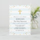 Plain white envelopes are included with paper invitations and will come to fit the invitation size you select. If you don’t need the envelopes, you may choose to not receive them by selecting the dropdown below "Envelopes" and choosing "None." If you’d like to have a design on your envelopes, you can browse all of these available envelopes to find the design that complements your Elegant Blue First Holy Communion Invitation Card.