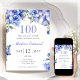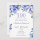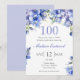 Elegant Blue Floral 100th Birthday Invitation