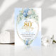Celebrate a remarkable milestone with this 80th birthday invitation featuring one of today’s most trendy and elegant color combinations: blue and gold. Designed with soft watercolor blue hydrangeas, fresh eucalyptus greenery, and refined gold floral accents, this invitation brings a sense of calm sophistication and joyful celebration to an unforgettable occasion.
