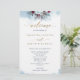 Elegant Wedding program with delicate blue watercolor stain background and top exquisite floral element with flowers and foliage in dusty blue, navy, burgundy, purple, magenta and red hues. Gold details in modern hand written calligraphy. Ability to make text changes and adjustments by selecting customize further. Front with wedding ceremony details, back with wedding party names and thank you message for your guests. Elegant and romantic modern feel. Part of our "Celestial Blooms"" collection with variety of coordinating products available.