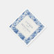 This elegant wedding napkin features a classic blue floral pattern with large, detailed flowers and leaves in various shades of blue, creating a rich tapestry effect. The central white square showcases customizable text in a sophisticated serif font, bordered by the intricate design that evokes a vintage porcelain aesthetic. Perfect for adding a touch of tradition and refinement to your special day, this design captures the beauty of florals in a structured and balanced layout, ideal for formal celebrations.