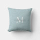Elegant Blue Floral Botanical Script Monogram Throw Pillow
