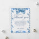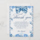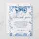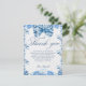 This elegant design features a watercolor Victorian floral motif showcasing delicate blue and white chinoiserie-style elements, including a vintage bow. Stylish calligraphy is paired with classic serif fonts.