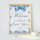 Elegant Blue Floral Bow Toile Calligraphy Welcome Poster