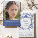 Elegant Blue Floral Coquette Graduation Photo Invitation