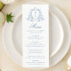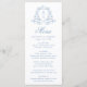 Elegant Blue Floral Crest Monogram Wedding Menu