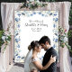 Elegant Blue Floral Frame Wedding Photo Backdrop