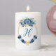 Elegant Blue Floral Gold Wreath Script Monogram Pillar Candle