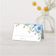 Elegant Blue Floral Greenery Wedding Folded Place Card