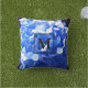 Elegant blue floral hydrangeas monogram outdoor pillow
