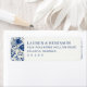 These return address labels feature a sophisticated design with a vertical layout, combining a detailed blue floral pattern on the left and clean, centered text on the right. The color palette includes various shades of blue, creating a calming and elegant atmosphere. The serif typography adds a formal touch, making these labels perfect for weddings or other special occasions. Customizable fields allow for personalization, ensuring they suit any event while maintaining a classic and refined look.