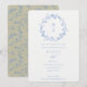Elegant Blue Floral Laurel Wreath Monogram Wedding Invitation