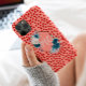 This custom phone case features a vibrant pink background adorned with a playful red heart pattern, perfectly balanced by a sophisticated navy and white floral monogram.