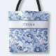 Elegant Blue Floral Pattern Cute Botanical Flowers Tote Bag is a stylish and practical accessory for daily use. Featuring a delicate blue and white floral pattern inspired by chinoiserie and toile designs, this tote showcases elegant peonies, bringing a timeless, sophisticated touch to any look. Perfect for bridesmaids or bridal showers, this chic tote bag can be customized with monogram initials, making it a thoughtful and personal gift. Ideal for shopping, errands, or everyday use, it adds a beautiful botanical flair to any outfit. A versatile and modern accessory that complements any wardrobe and makes a great addition to a party gift basket.🦋 You can easily customize the product by adding your initials to make it completely unique. You can also change the font to your liking by opening "Personalize this template" > "Edit using Design Tool". Need more help? Click the "Message" button below. We are happy to help with custom orders.