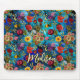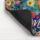 Elegant blue Floral pattern monogram Mouse Pad