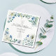 A beautiful blue and white watercolor flower napkin for a child's baptism ceremony. Lovely religious napkins featuring an elegant floral bouquet and a pretty cross behind the custom script for your gathering or Catholic ceremony.