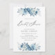 Elegant blue floral script bridal shower invitation