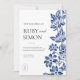 This elegant wedding invitation features a delicate blue floral frame that softly surrounds your wedding details. Hand-drawn botanical elements in calming blue tones create a timeless and romantic look, perfect for couples seeking refined elegance. The floral border adds charm without overpowering the design, making your invitation both graceful and memorable.