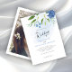Plain white envelopes are included with paper invitations and will come to fit the invitation size you select. If you don’t need the envelopes, you may choose to not receive them by selecting the dropdown below "Envelopes" and choosing "None." If you’d like to have a design on your envelopes, you can browse all of these available envelopes to find the design that complements your Elegant Blue Floral Watercolor Photo Invitation.