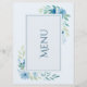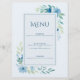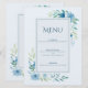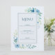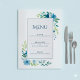 This elegant wedding menu features soft blue watercolor florals beautifully framing your courses, complemented by refined typography for a classic timeless wedding style. Designed with a delicate botanical frame artwork, this simple minimalist floral wedding menu card design brings a romantic botanical floral design element to your table setting. Ideal for formal reception meal details, its gentle soft color palette and simple minimalist layout design make it a perfect fit for an elegant garden wedding theme. This vintage pink flowers motif coordinated piece adds a soft and sophisticated touch to your celebration.