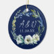 Elegant Blue Floral Wedding Monogram Christmas Ceramic Ornament