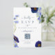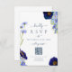 Elegant spring and summer blue floral wedding rsvp response card with QR Code. Unique hand painted watercolor florals including wildflowers with beautiful elegant romantic typography script to personalize with wedding response reply date and website details including QR Code for online rsvp using the easy to use templates. Meadow flowers including cornflowers, poppies, cosmos and forget me nots with delicate foliage artwork by artist Catherine Sweetman. Color palette includes cornflower blue, dusty blue, blush blue, navy blue, purple and green hues. Ideal for a botanical garden or outdoor spring summer wedding. Find matching items in the elegant summer floral blue wedding suite