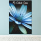 Blue Flower on Black Background Canvas Print. The blue flower represents a calming, peacefulness and serenity and brings feeling of relaxation and comfort to your backyard. Adding a canvas print to your back yard oasis is a great way to make it look more inviting and stylish.. Hang the canvas on one wall for an eye-catching piece that will draw attention from guests. You can add your own custom wording by clicking on edit this design.