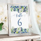 Watercolor elegant navy blue flowers with blueberries wedding table numbers. Blueberry floral wedding table numbers.