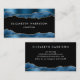 Elegant and modern professional business card that features shimmery blue foil edged in gold faux glitter against a black background. Your name and details are in simple white gold typography.