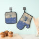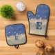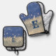 Elegant Blue Glitter Bokeh Monogram Oven Mitt & Pot Holder Set