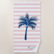 Elegant Blue Glitter Palm Pink Stripes Beach Towel