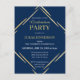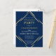 Celebrate your 2025 graduation with family and friends with this elegant blue gold graduation party invitation postcard. This design features a modern style in dark blue and gold with gold geometric accents.