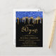 Elegant Blue Gold Black Glitter Drips 50 Birthday Postcard