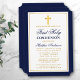 Elegant Blue Gold Cross First Holy Communion Invitation