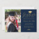 Elegant Blue Gold Formal Script Photo Graduation Announcement
