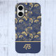 Elegant Blue Gold Ginkgo Leaves with Name Monogram Case-Mate iPhone Case