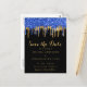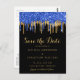 Elegant Blue Gold Glitter Drips Save The Date Postcard