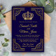 Elegant Blue Gold Ornate Crown Wedding Invitation