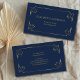 An elegant blue and gold business card with a scroll design around the edges on the front and back. Add your details to the front and back. Suitable for many businesses.