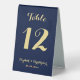 Elegant Blue Gold Wedding Reception Table Number Table Tent
